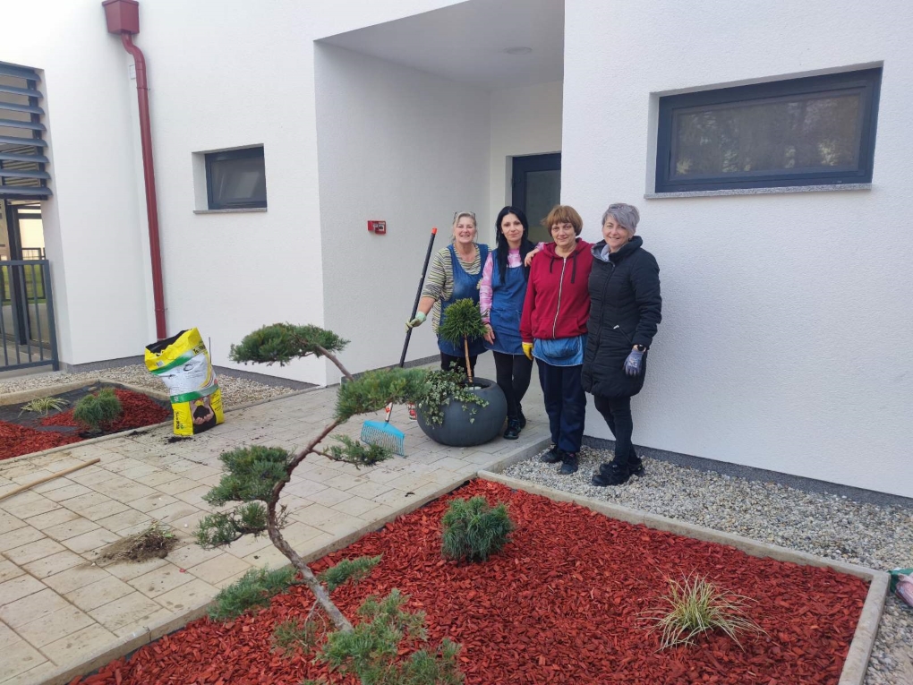 8.11.2024.godine, vrijedne ruke naših teta, uredile su prilaz Dječjeg vrtića Suncokret Strahoninec.